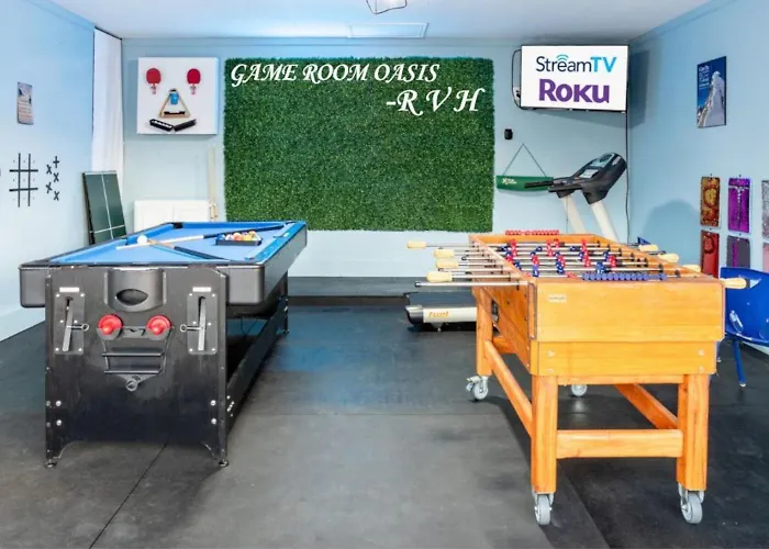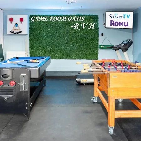 Situada a 6 km del Parque Acuático Bahama Beach, la villa Ultimate Game Room Oasis For 12 - Private Patio - Bbq - 2 Kings - 6 Tvs - Full-Body Massage Chair Dallas ofrece bolera para el ocio de los huéspedes. La villa ofrece la posibilidad de practicar bowling, ping-pong y yoga en la zona, a unos 10 minutos en coche de Light of the World Church of Christ.